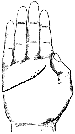 感情线比较的挺直,在中指下结束,是属于短的感情线,主不重于爱情、心胸狭窄、有嫉妒妄想、爱恶盲目的人,有此线而手细腻板薄的人,对异性不发生热情,最后以悲剧收场;相反如果手掌之肉厚,则会将爱情和工作区别得很明显,玩的时候彻底的玩,但做事的时候很果断,不拖泥带水或犹豫不决,对异性不痴恋;有此手相的女性,如果不克制自己沉溺于恋爱中,则会招致麻烦,所以不能以为结婚能带给她幸福,应该要有一技之长,专心工作,不可呆在家中,否则纠纷将此起彼落。
