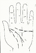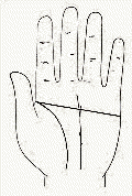 掌中三大主线起点交接着,即生命线,智慧线,感情线交接(如图)乍看之下,好像是感情线与智慧综合而为一,横切过掌面,其中又可细分为,位置靠近食指者,偏重感情,位置靠近拇指者,偏重理智,断掌的人,由于理性与感性统合,个性刚强意志坚定,具有言出必行,不屈不挠不向环境低头的特性。