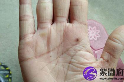 拇指跟食指算早年,中指之后就渐渐进入30几岁了,中指出现痣的人很容易在工作环境发生桃花的机会。