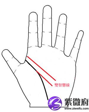(6)双智慧线:妳有双重的能力,胆大却心细,可以做性质迥异的工作,也多有双重人格,八面玲珑,风采魅力相当吸引人。有此手相的朋友,常能成为一方之霸。男性拥有这种掌纹,能掌握庞大的权力和财富。