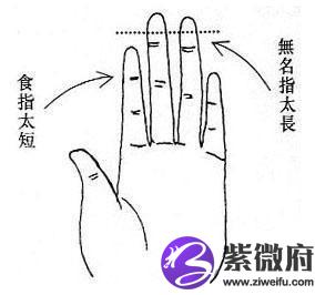 食指短而无名指过长的女性。这种手相有一个不好的地方,便是喜欢投机和赌博了,而这种女性往往流连于麻雀耍乐中,忘却家务,令到丈夫产生不愉快的心情,因此应该及早把这种性格缺点改过,否则便会大大影响婚姻。