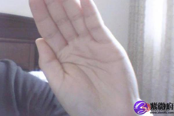 智慧线末端分叉、弯垂尾梢在中、无名、小指的范围新生平直或钭上翘的: