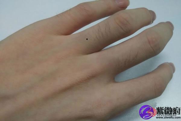 4、左手无名指长痣,无名指的痣如果是在背後的话,表示你的另一半会很有成就,但如果是在手掌的那一面就是会遇到年纪不相称的,无名指就叫夫妻宫,有痣者命运中就注定会遇到所谓女大男小,或是门不当户不对的问题。