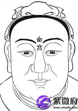 命宫(命宫的位置在双眉之间,山根之上,也就是印堂的位置是命运总开关的所在。)也是吉凶气色的聚合处,如果光明如镜,一生便多顺遂,倘是陷落而不平坦,被眉头侵犯而显得狭窄,或因有皱眉头的习惯而形成皱纹,或因受伤而留下疤痕,这都会影响命运的起伏,而发生负面的遭遇。