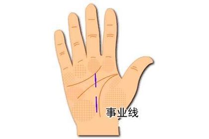 事业线在掌心处断开的人,步入中年后事业会遭受挫折,财产将遭受损失;事业线在手颈纹处断开的人,少年时代生活艰辛,或曾辍学;事业线断开,旁边另起一条线的人,环境与事业会发生较大的变动。