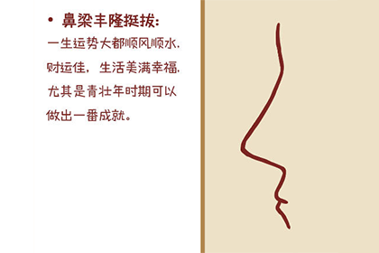 好的鼻相应该具备挺直、丰隆以及没有痣疤的优点。鼻子并不是越大越好,还需看鼻子与脸的比例是否恰当。如果鼻相或有瑕疵,就要提醒自己多多注意,改善弱点,扭转运势。如若是重视修养,并且不断开发自己的潜能的话,相信不但能够扭转逆境,还能够改变命运。若是相貌不佳便自暴自弃,那麽成功的指数相对来说也比较低。