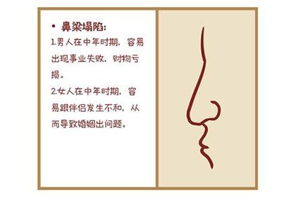 1、在面相学中,鼻梁很塌、呈凹进状态一般不属于良相。鼻梁塌的女人,不仅性格孤僻,而且疑心很重,好妒忌。山根低的女人是幻灭家庭的凶相,克夫。所以塌鼻梁的女人往往人缘不太好,不论是婚前还是婚后都是花钱如流水。若是加上鼻孔比较大的话,则多属于破坏家产、挥霍无度的败家女。