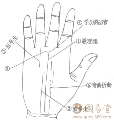 3.命运线前半部分没有,而后半部分有者,为35岁以后有发展,35岁前不成功。