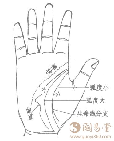 2.生命线弧度小的人,精力不旺盛,做事小心谨慎、身体差。